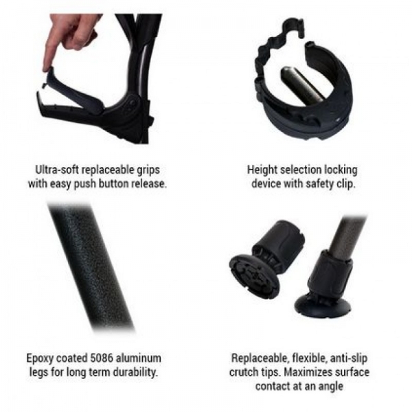 Βακτηρία Αγκώνος Με Πτυσσόμενη λαβή Ergotech Μαύρη